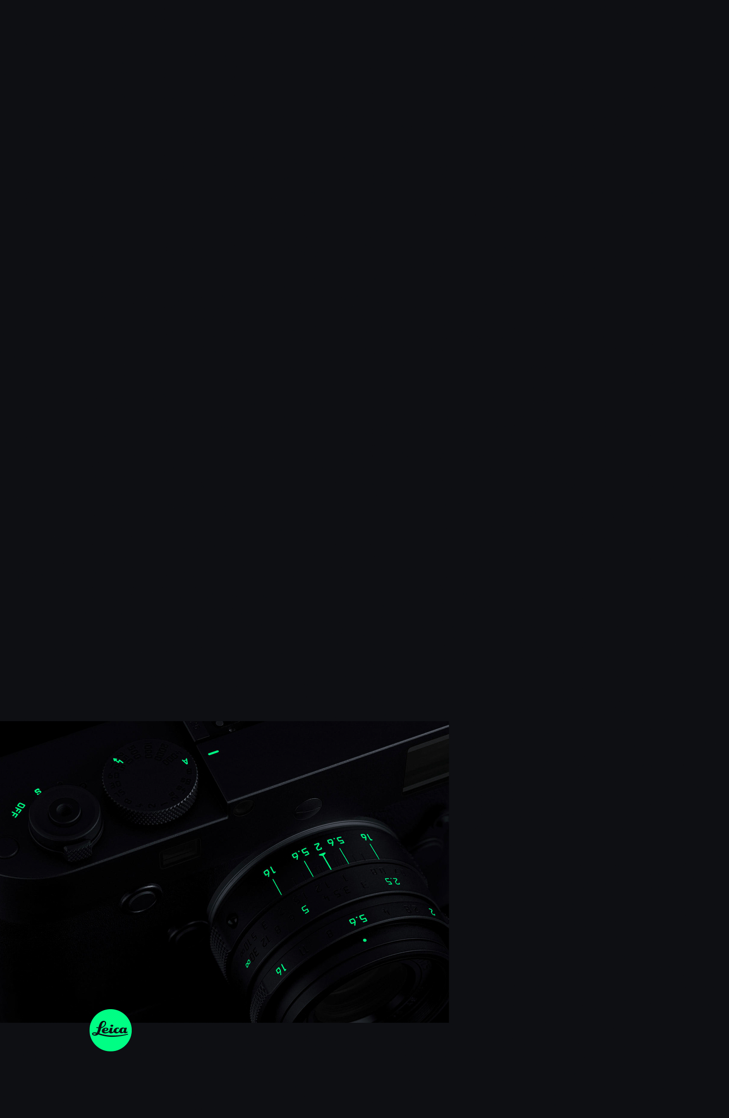 Posters produced with green fluorescent ink that glows in the dark, promoting the arrival of a special edition of Leica M Monochrom, which also has details in green that make it easier to use the camera in environments with reduced lighting.